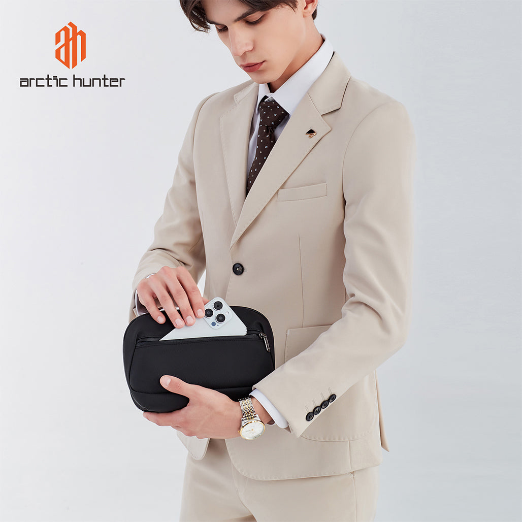 The pouch features a durable water-resistant exterior that shields your items from light rain, spills, dust, and daily wear. Its strong construction ensures long-term use, while the sleek black Arctic Hunter styling adds a professional and modern look.
