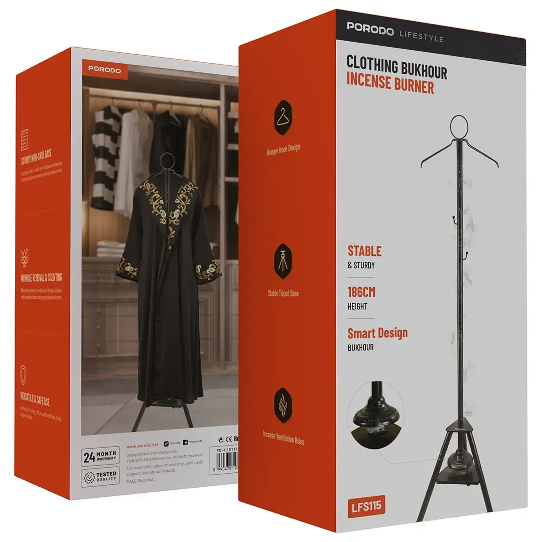 Porodo engineered this clothing bukhour incense burner to deliver convenience, safety, and elegance. Whether used daily or occasionally, it enhances clothing freshness while preserving traditional fragrance practices in a modern, user-friendly form.